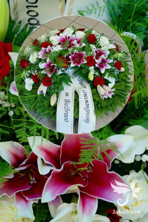 Alshain. Krüsanteem, liilia, iiris, nelk, roos ∅60cm 125€ , ∅80cm 165€